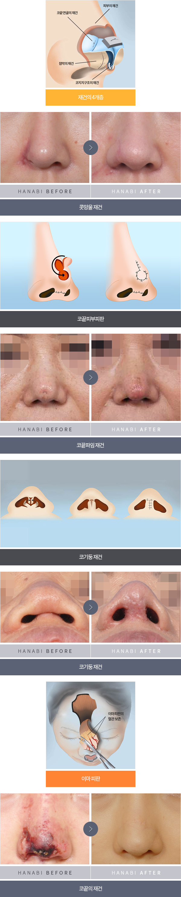 코의 재건은 사고나 필러주사후의 피부괴사 혹은 심한 코성형 부작용 등으로